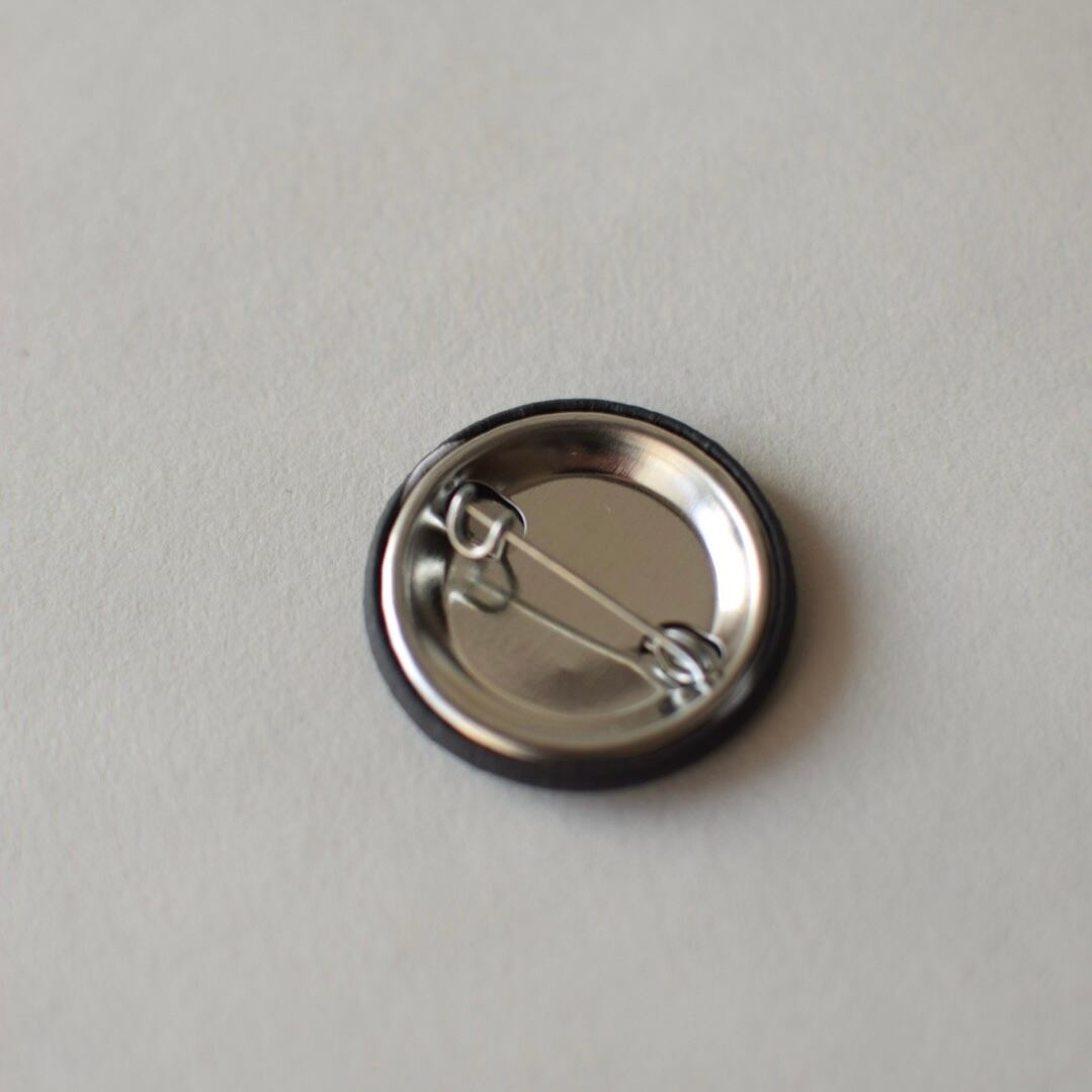 ALOHA OLIVERデザインのネイビーの缶バッチ。